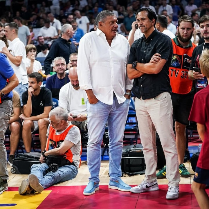 08月24日讯 塞尔维亚新星,热火球员约维奇的经纪人,同时也是约基奇等多位欧洲球员的经纪人Miško Ražnatović更新个人社交媒体,晒出自己与热火主教练斯波的合照,对其表示了敬意。