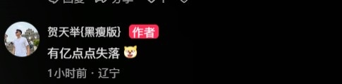 在这条动态的评论中,贺天举还写道:“有亿点点失落。”