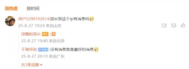 对一名IP归属地山东的网友的询问,赵探长回复没有消息。