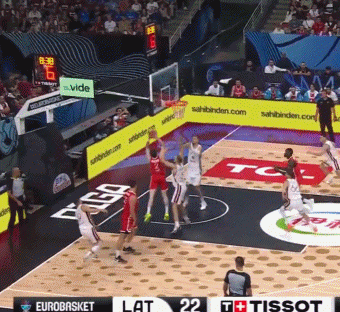 在上半场比赛,波尔津吉斯还被对方的后卫哈泽尔隔扣。