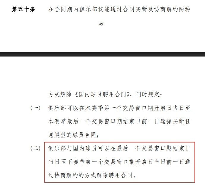 但这个协商解约就真的是商量着来了(图4),比如规定一上来就写了,“俱乐部与国内球员可自行约定剩余工资、培养费(最多收取 50%)及 CBA 联赛相关注册权利等”。