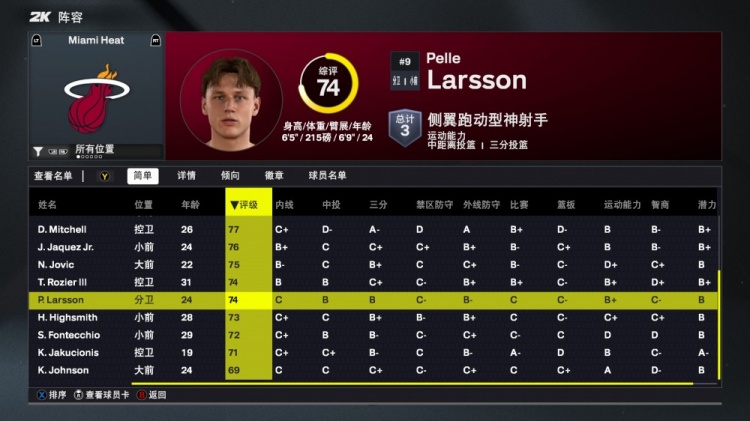 8月30日讯 NBA2K26各队球员能力值出炉,其中热火队球员详细能力值如下: