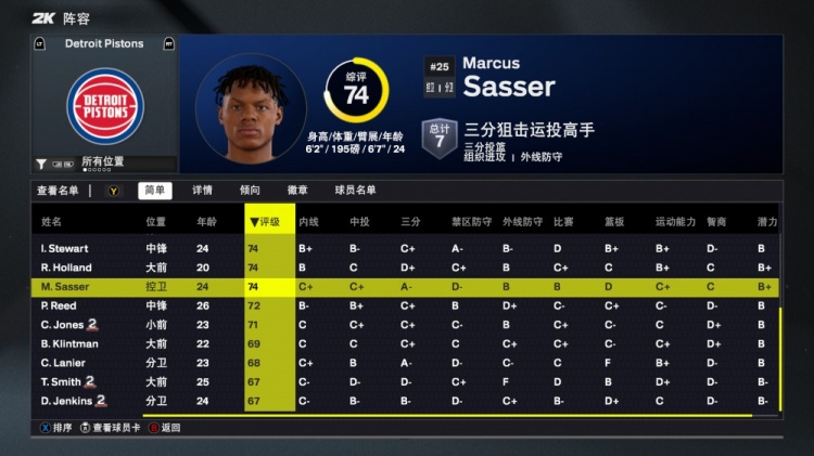 8月30日讯 NBA2K26各队球员能力值出炉,其中活塞队球员详情如下: