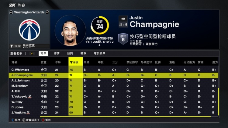 8月30日讯 今日NBA2K26正式发布,奇才队球员能力值如下: