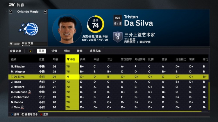 8月30日讯 今日NBA 2K26正式发布,魔术队球员能力值如下: