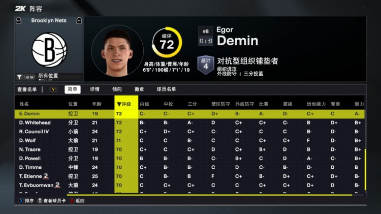 8月30日讯 NBA2K26各队球员能力值出炉,其中篮网详情如下: