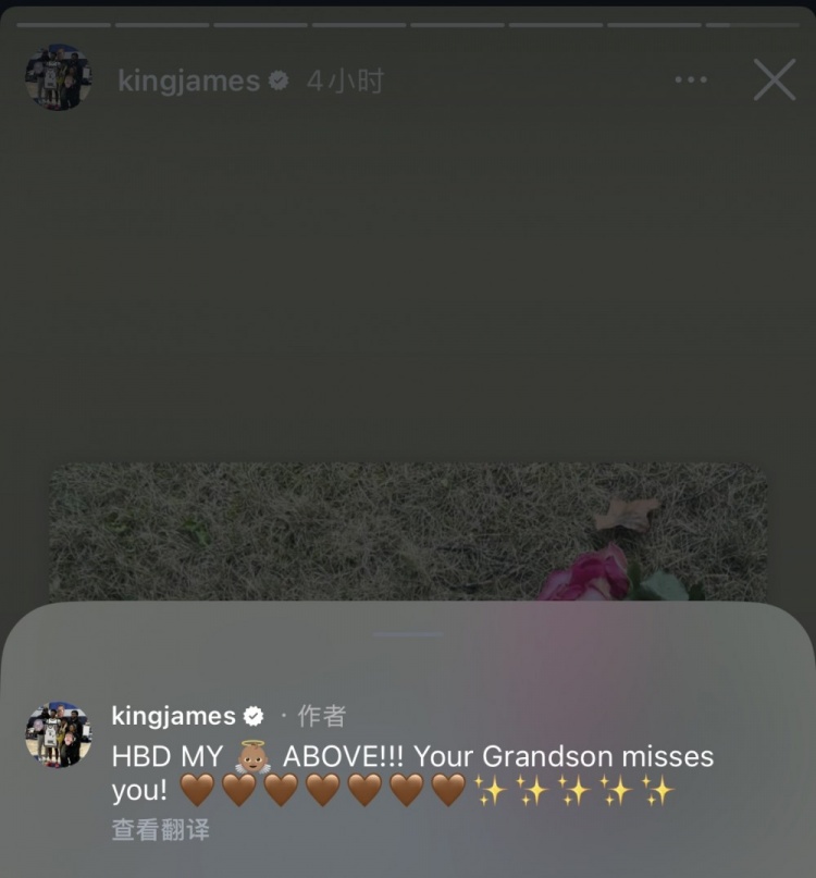 詹姆斯的母亲晒出自己母亲(即詹姆斯外婆)的墓碑照,纪念母亲诞辰日。詹姆斯转发母亲的帖子写道:“生日快乐,我天堂上的👼🏽!!!您的外孙想念您!🤎🤎🤎🤎🤎🤎🤎✨✨✨✨✨✨✨”