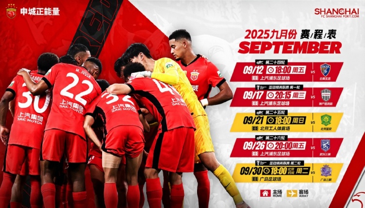 ⏰海港队9月赛程