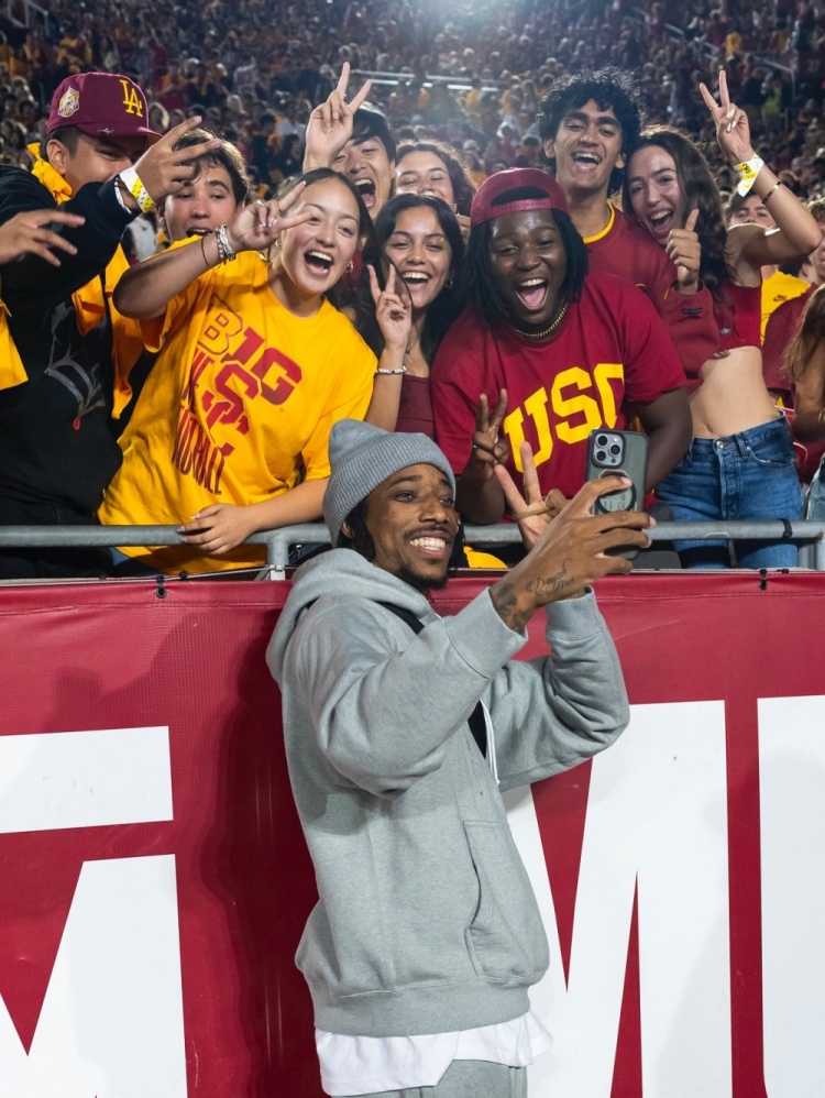永远的特洛伊人!德罗赞回母校南加大看橄榄球 与校友开心互动