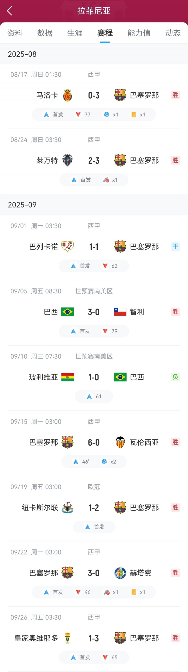 而拉菲尼亚的受伤似乎早有预兆。新赛季开赛以来,他参加了俱乐部+国家队的每一场比赛,甚至在无关出线资格的最后一轮世预赛(巴西0-1客负玻利维亚)中也替补登场出战了半小时。