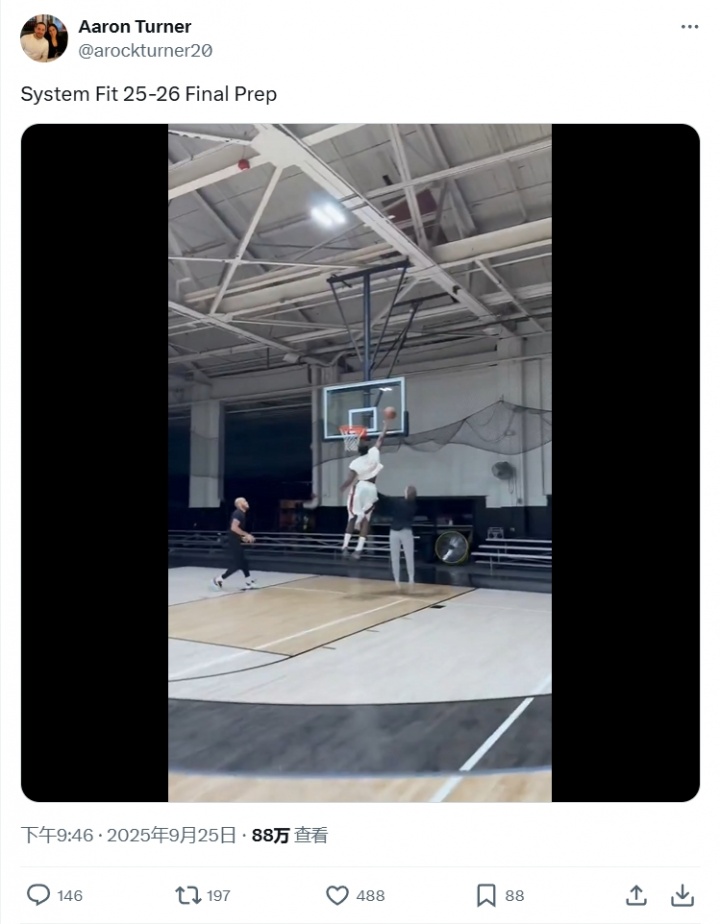 最近几个关于库明加的训练视频,都是库明加的经纪人Aaron Turner在个人社媒晒出。