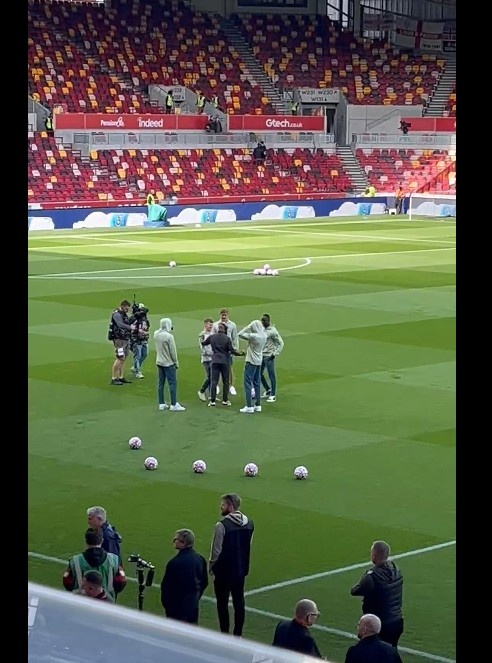 迎战旧主,姆伯莫赛前在球场与昔日布伦特福德队友相谈甚欢