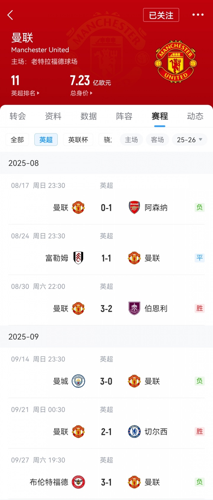09月27日讯 曼联开局2胜1平3负,6轮7分追平队史英超最差开局。
