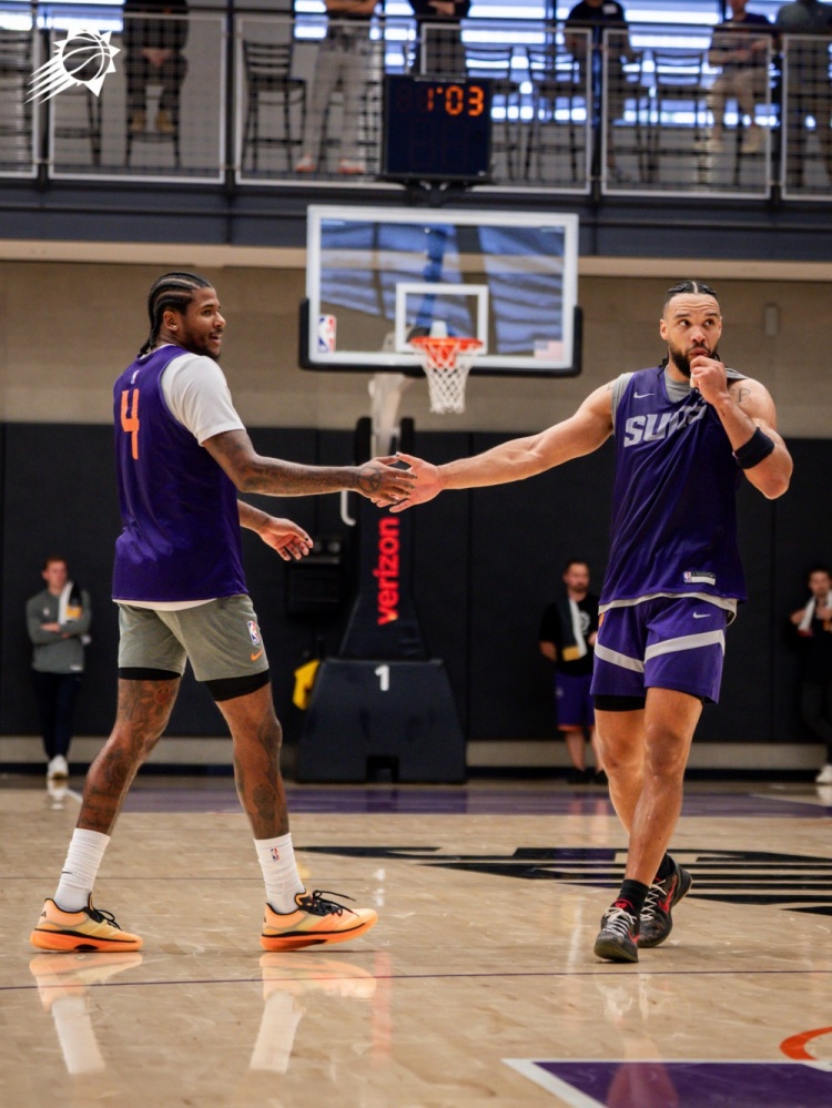 新赛季能走多远?太阳晒训练照:杰伦-格林狄龙击掌 马卢阿奇扣篮
