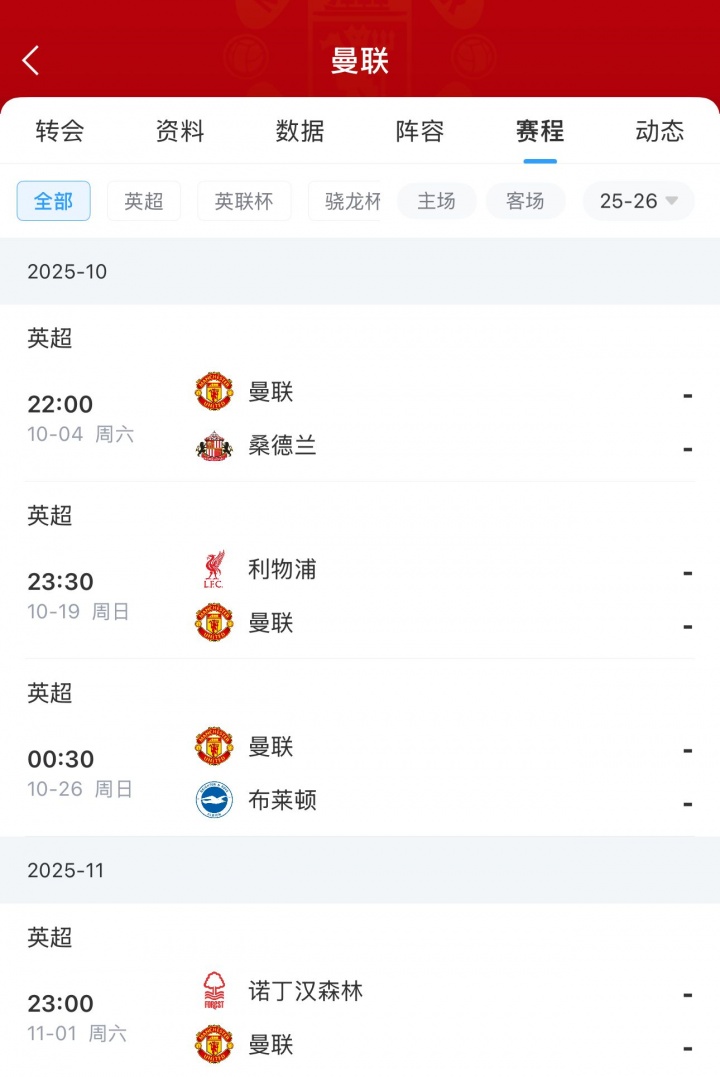 而如今距离阿莫林上任一周年还有不到5周的时间,这期间曼联将先后在英超对阵桑德兰(主)、利物浦(客)、布莱顿(主)和诺丁汉森林(客)。