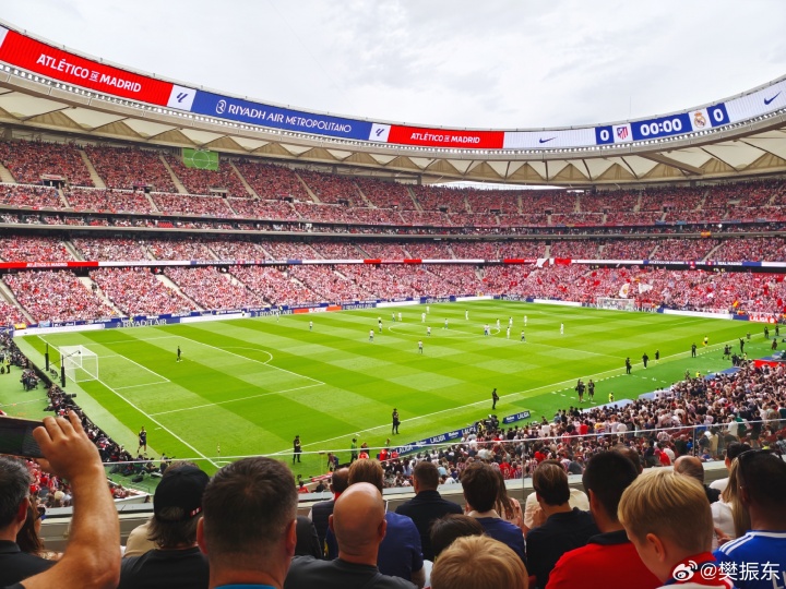 樊振东晒出现场观战的照片,写道:感谢 @LALIGA西甲联赛 的邀请,第一次随皇马征战客场,在大都会球场亲历德比的激烈碰撞与"the power of our fútbol"⚽