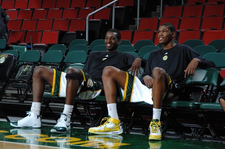 杜兰特和杰夫-格林都在2007年通过选秀大会进入联盟,是当初超音速的双子星。