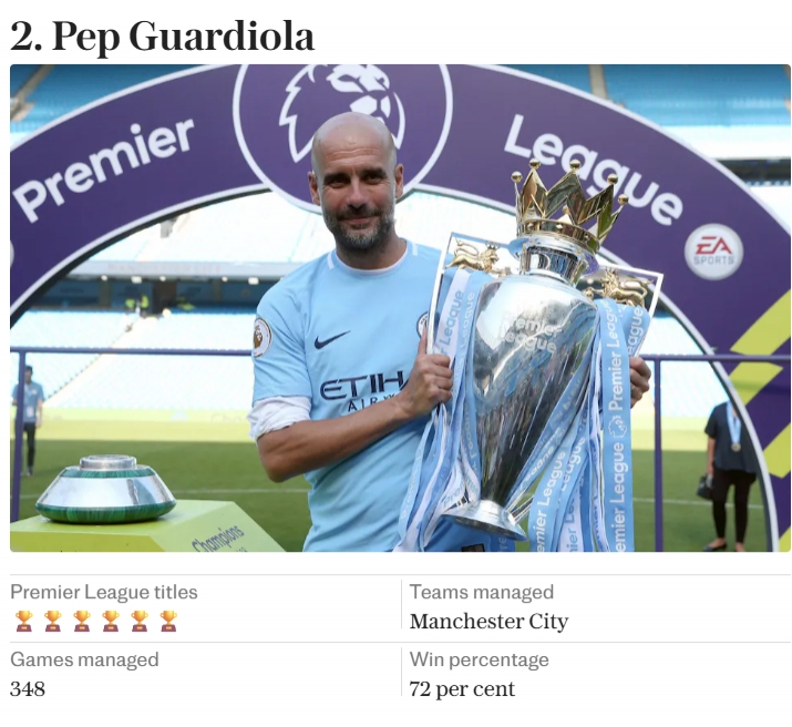 电讯报评英超历史十大主帅:弗格森第1,瓜帅第2,温格、穆帅三四