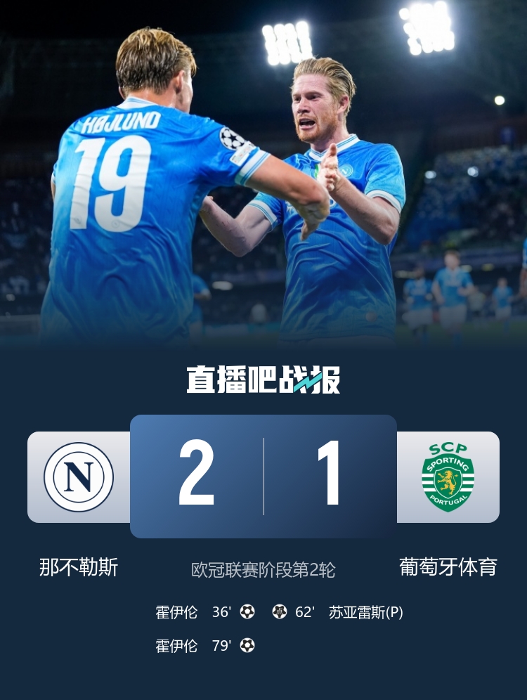 曼市连线!那不勒斯2-1葡体 霍伊伦梅开二度德布劳内助攻双响