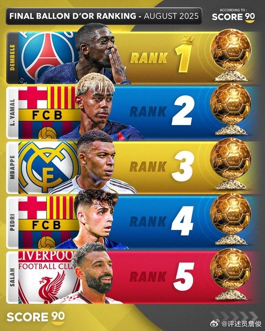 詹俊:2025金球奖的颁奖仪式下周一将在巴黎进行,国外媒体对金球奖和金童奖的预测............大巴黎将是大赢家。登贝莱是不是该多拿一个“幡然醒悟”奖? ​​​