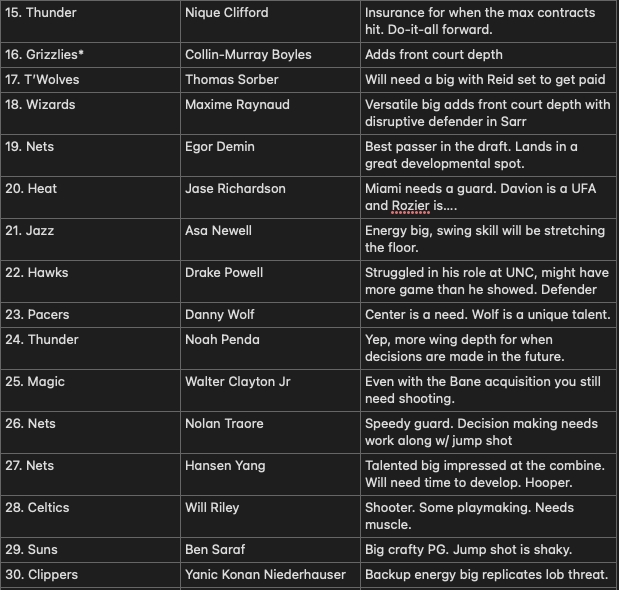链接>>>专家认可!Big Board模拟选秀更新:杨瀚森27顺位被篮网选中
