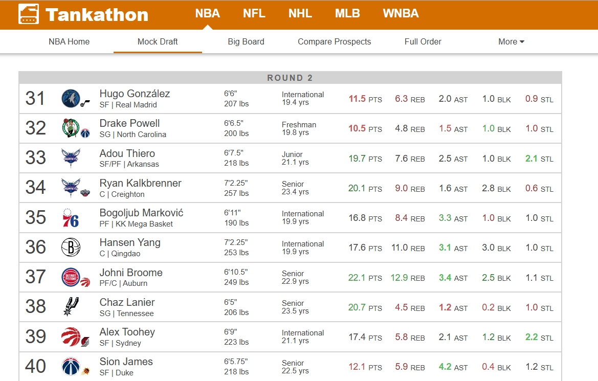 06月20日讯 著名选秀网站Tankthon今天更新了他们最新一期的模拟选秀榜单。