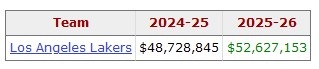 若詹姆斯选择执行选项,那湖人仅能向自由球员提供570万美元的迷你中产特例。此外,湖人仅剩1个(2031或2032年的)可交易的首轮选秀权,可用于阵容升级。