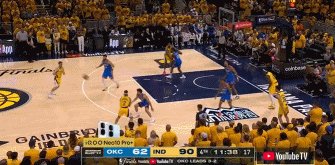 6月20日讯 NBA总决赛,步行者末节领先雷霆30+。
