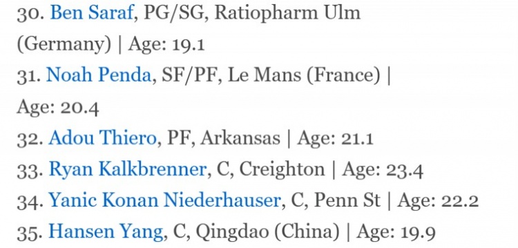 较上期上升2位🤩老牌选秀网站更新:杨瀚森第34顺位被黄蜂选中