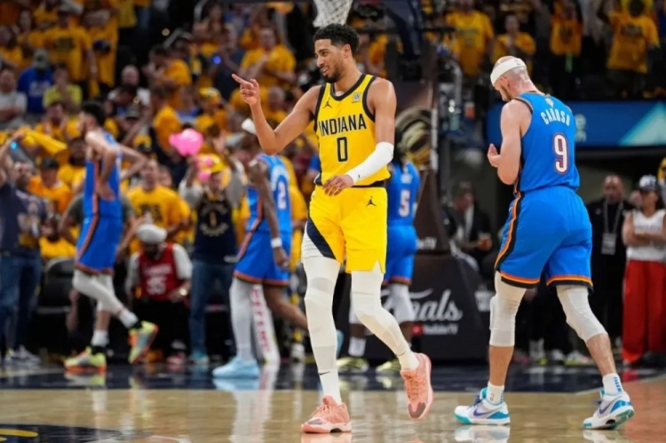 步行者的防守质量其实相对稳定,总决赛每场都防得不错,G6谈不上防守超水平发挥,但雷霆进攻拉了坨大的。
