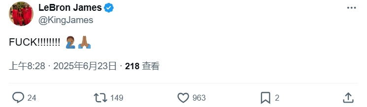 詹姆斯随即发推:“操啊!!🤦‍♂️🙏”