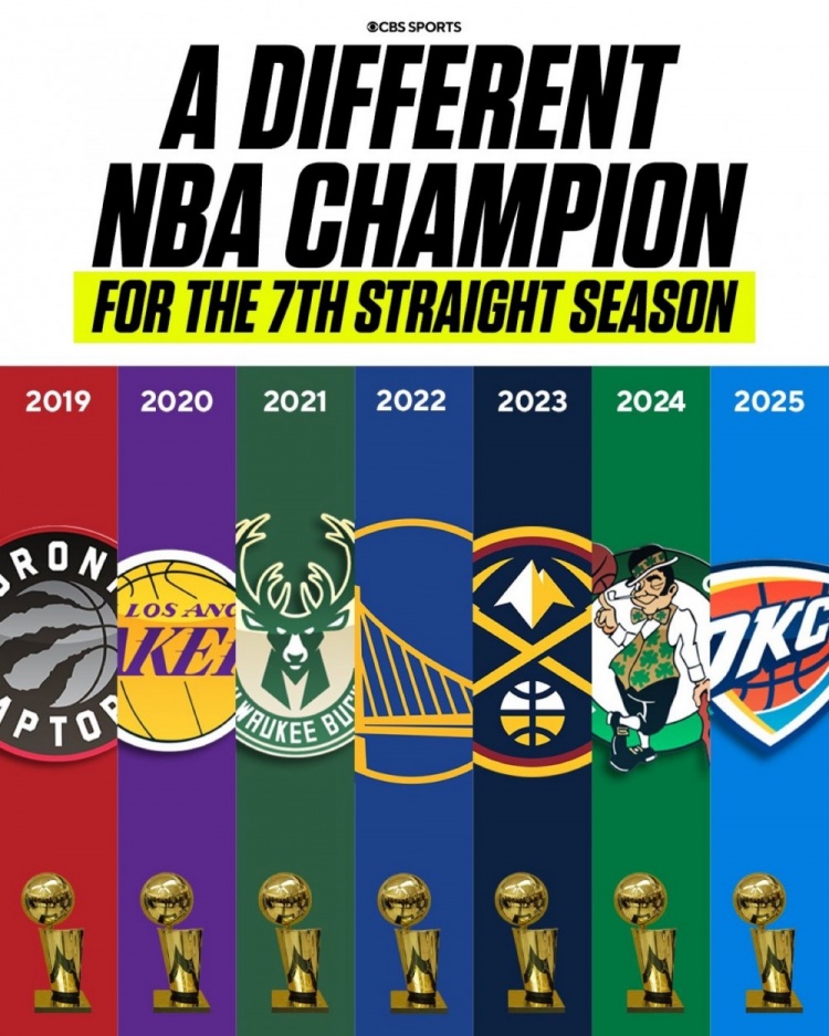 新王当立!连续七年不同球队夺得NBA总冠军 历史首次