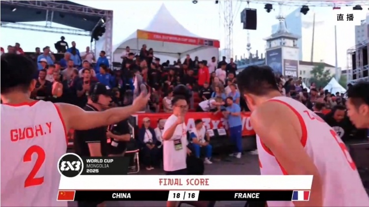 一开场,中国队内外开花取得微弱优势,法国队大举反击,连投带罚打出6-1的攻击波强势反超,郭翰宇挺身而出,连得4分率队扳平比分,法国队连续造成杀伤重新获得4分优势,暂停调整后中国队连得4分顽强追平,法国队中投得手再度取得1分优势,但随后连续被吹技术犯规,中国队两罚一中将比赛拖入加时。加时赛,郭翰宇先中一球,相智超自投自补一剑封喉!最终,中国三人男篮加时18-16险胜法国。