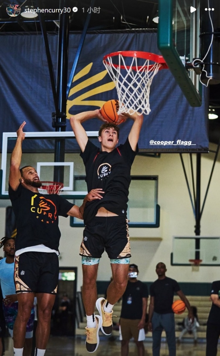 勇士球星库里在INS晒出了自己和弗拉格的合照并写道:“从库里训练营到NBA,冲呀@弗拉格!”
