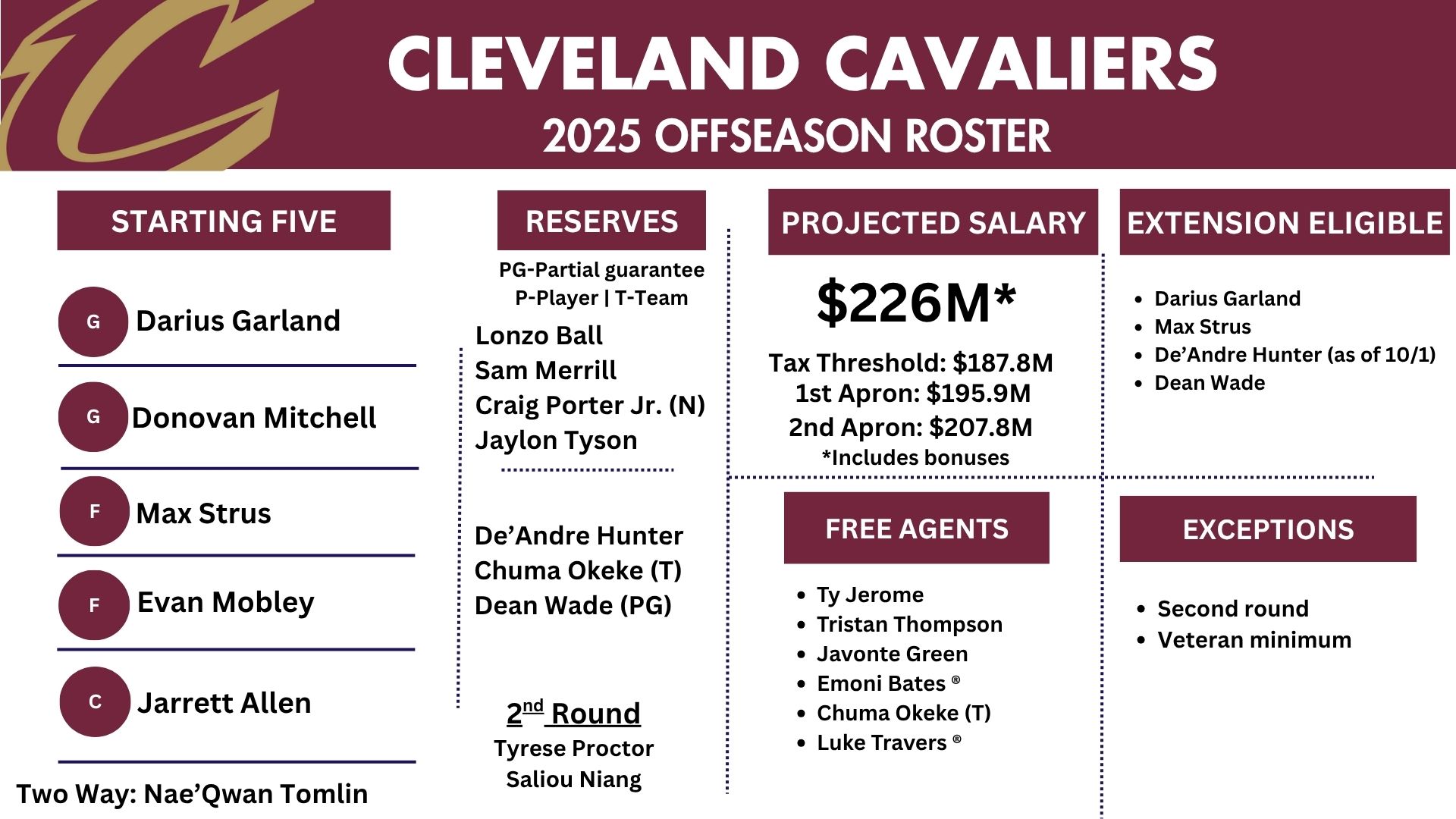 骑士目前受保障的薪资是2.26亿美元,超出第二土豪线(2.078亿)1800万美元左右,预计支付1.45亿美元的奢侈税(下赛季结束后具体清算),薪资与奢侈税目前合计3.71亿美元。