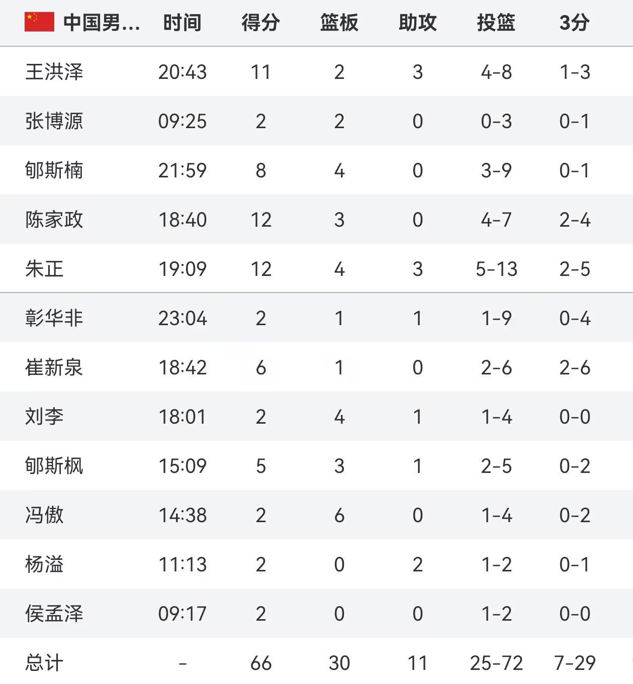 本场比赛,国青队一度将比分追至3分,随后主教练曲绍斌将首发换下,直到大比分落后首发才重新回到场上。首战砍下20分的张博源今日下半场更是一秒未上。