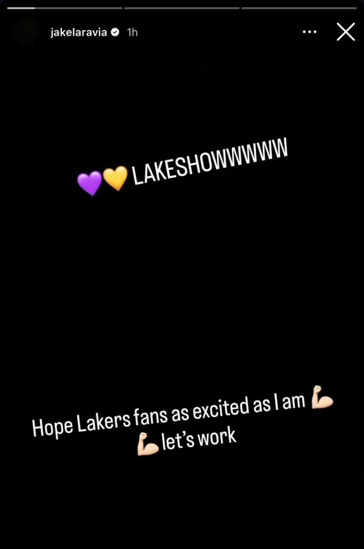 随后,拉拉维亚更新了社交媒体,写道:“💜💛湖人秀!希望湖人球迷和我一样兴奋💪!一起冲吧!”