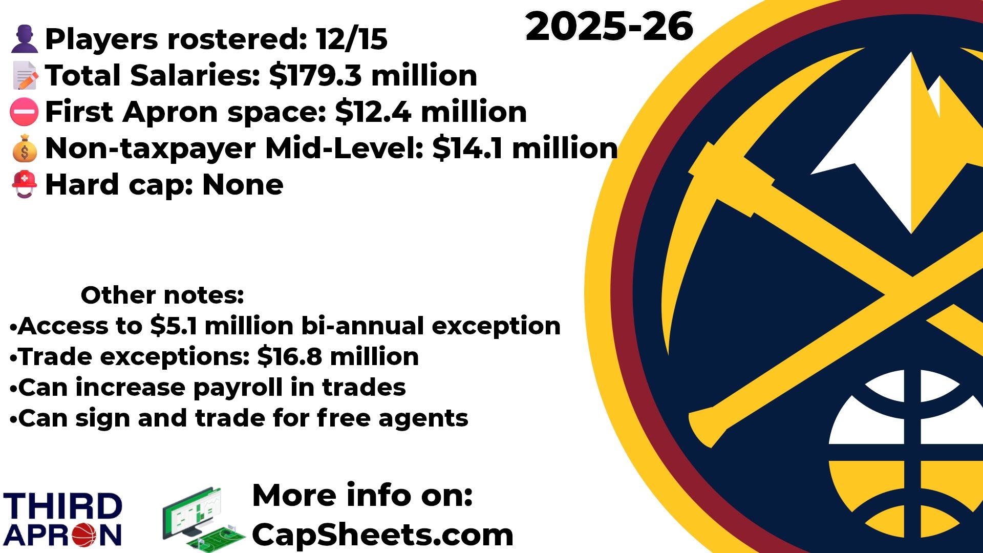 同时,掘金现在能够使用全额中产特例,价值1410万美元。