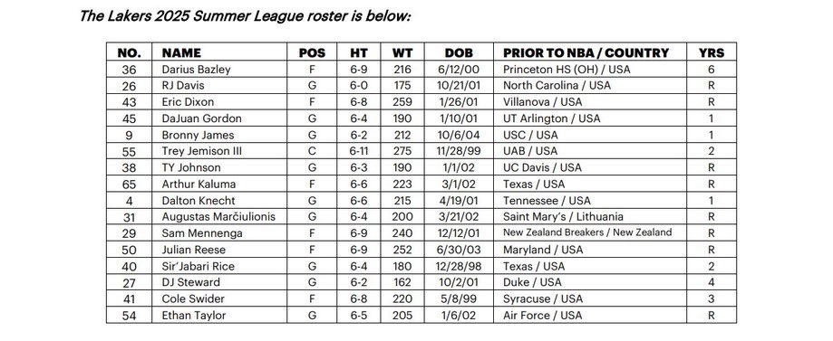 07月03日讯 湖人公布了今年夏联的安排。