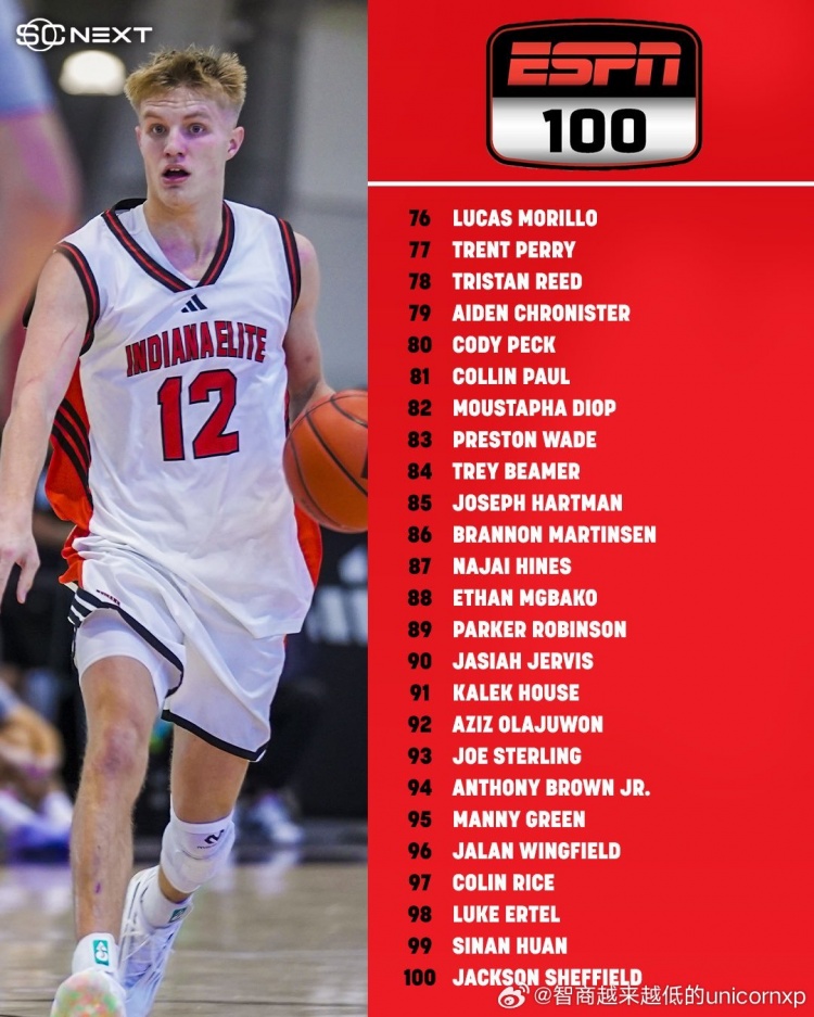 ESPN更新2026届全美高中生排名 中国小将郇斯楠排名降至第99位