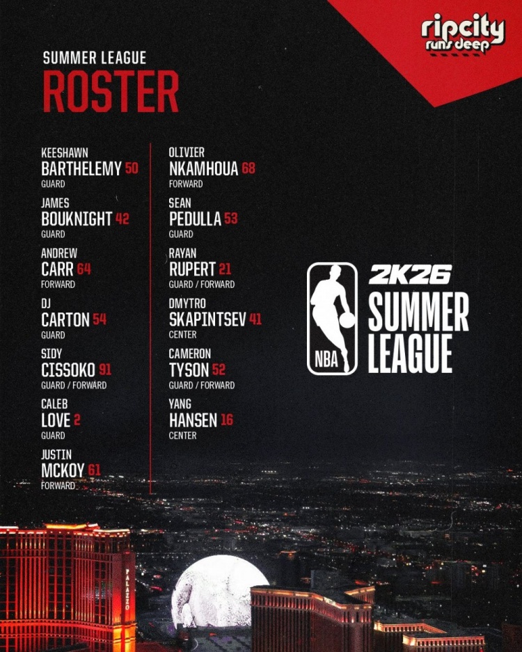 排面🤩开拓者公布夏季联赛大名单 杨瀚森领衔&成海报封面人物