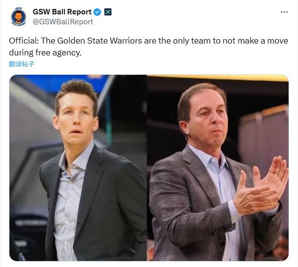 官宣:勇士是唯一一支在自由球员市场没有任何运作的球队。