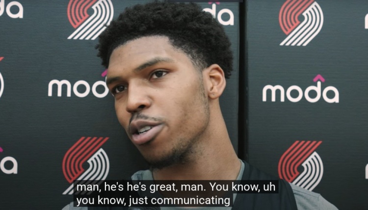 当记者问道对杨瀚森的第一印象如何,凯莱布-乐福表示:“哦,他太棒了。和他沟通的时候,我能感受到他总充满能量。虽然我们存在一些语言障碍,但大家在努力让沟通变得更简单,也都在想办法帮他。他很有天赋,篮下脚步出色,篮圈附近的手感也很好,还是个优秀的战术发起人,和他一起打球很舒服。”