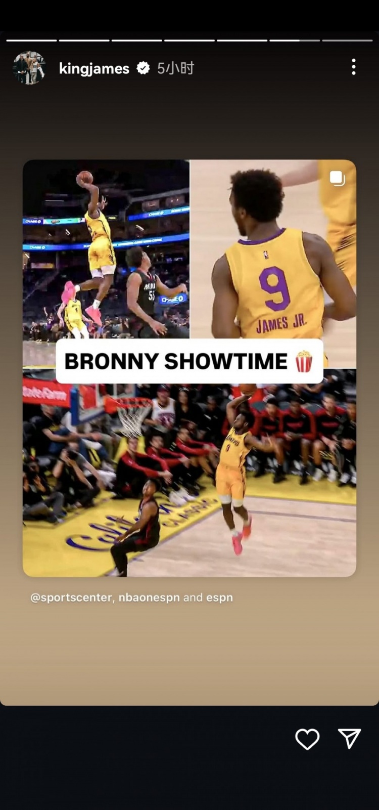 乃父之风😍布朗尼夏联献精彩暴扣 詹姆斯连发三条动态