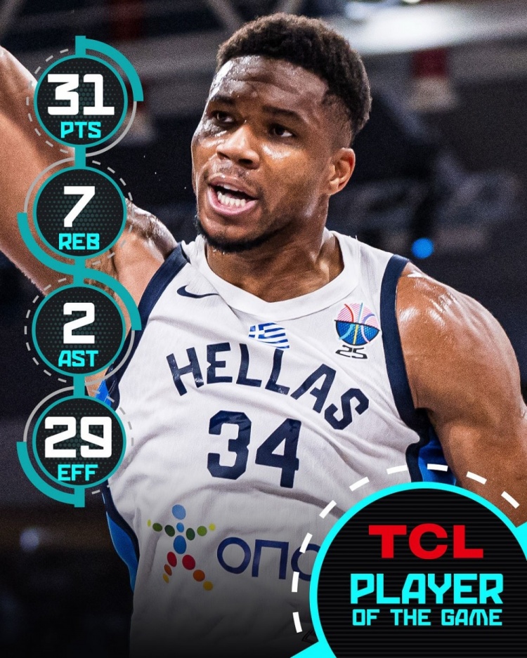 此役,希腊球星字母哥出战29分02秒,投篮20中14,罚球4中3,砍下31分7板2助1断,另有5次失误,正负值-3。
