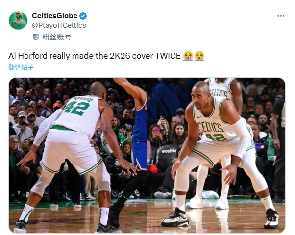 CelticsGlobe转发推文并写道:“艾尔-霍福德真的两次登上2K26封面。”