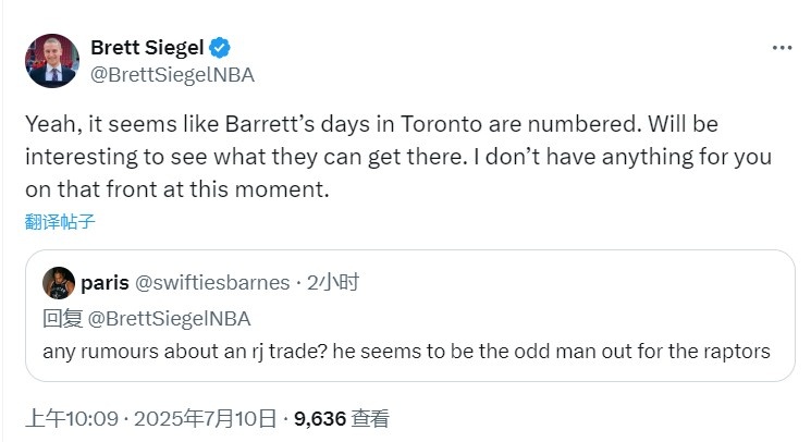 7月10日讯 今天,ClutchPoints记者Brett Siegel在网上与网友进行了互动,谈到了多个话题。