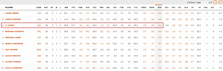 本月篮板前三:里斯、史蒂文斯(前队友)、李月汝