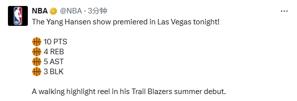 赛后,NBA官方与各大知名媒体都转发了杨瀚森的数据与表现。