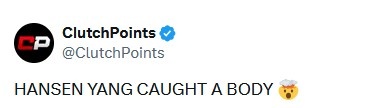 震惊外网!美媒ClutchPoints发推感叹:杨瀚森暴力隔扣🤯